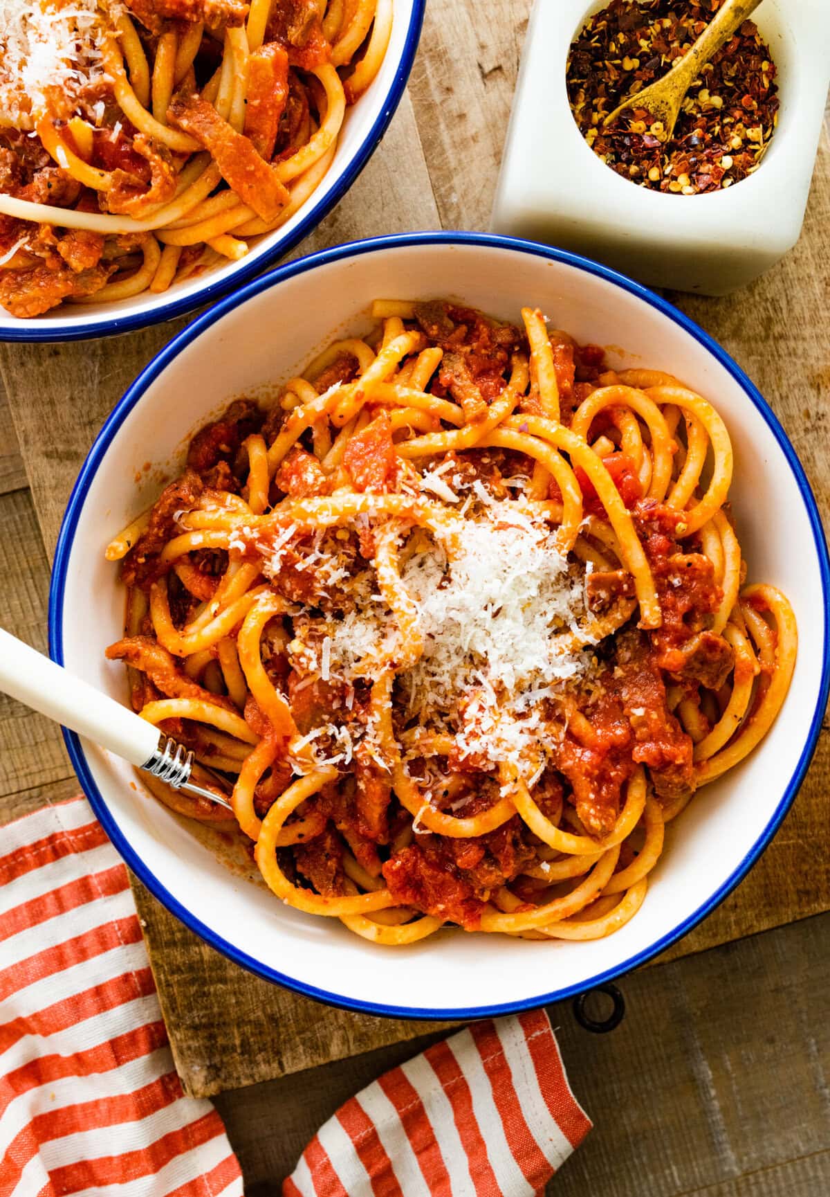 This is a recipe you don't want to miss. This classic sauce takes its spiciness from black pepper and dried chiles and its depth of flavor from guanciale, Italian salt-cured pork. Add this to your meal plan this week!