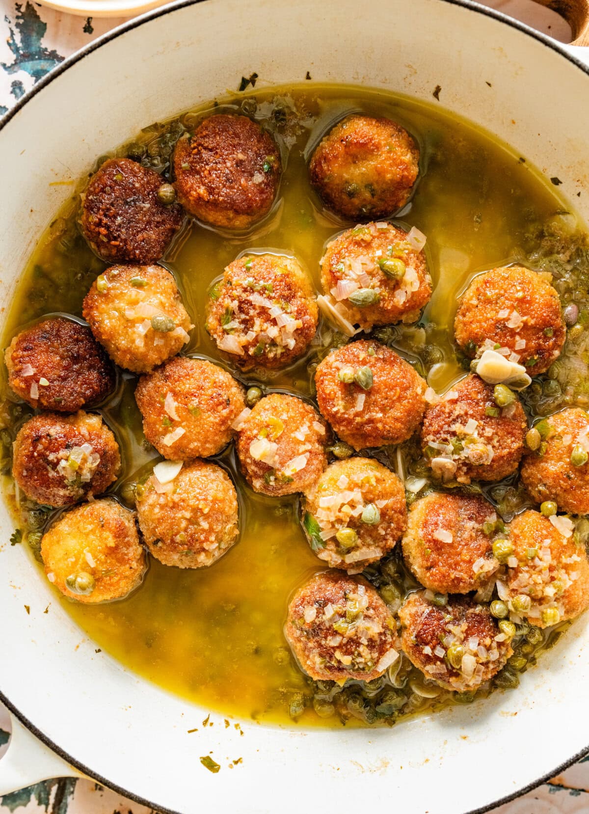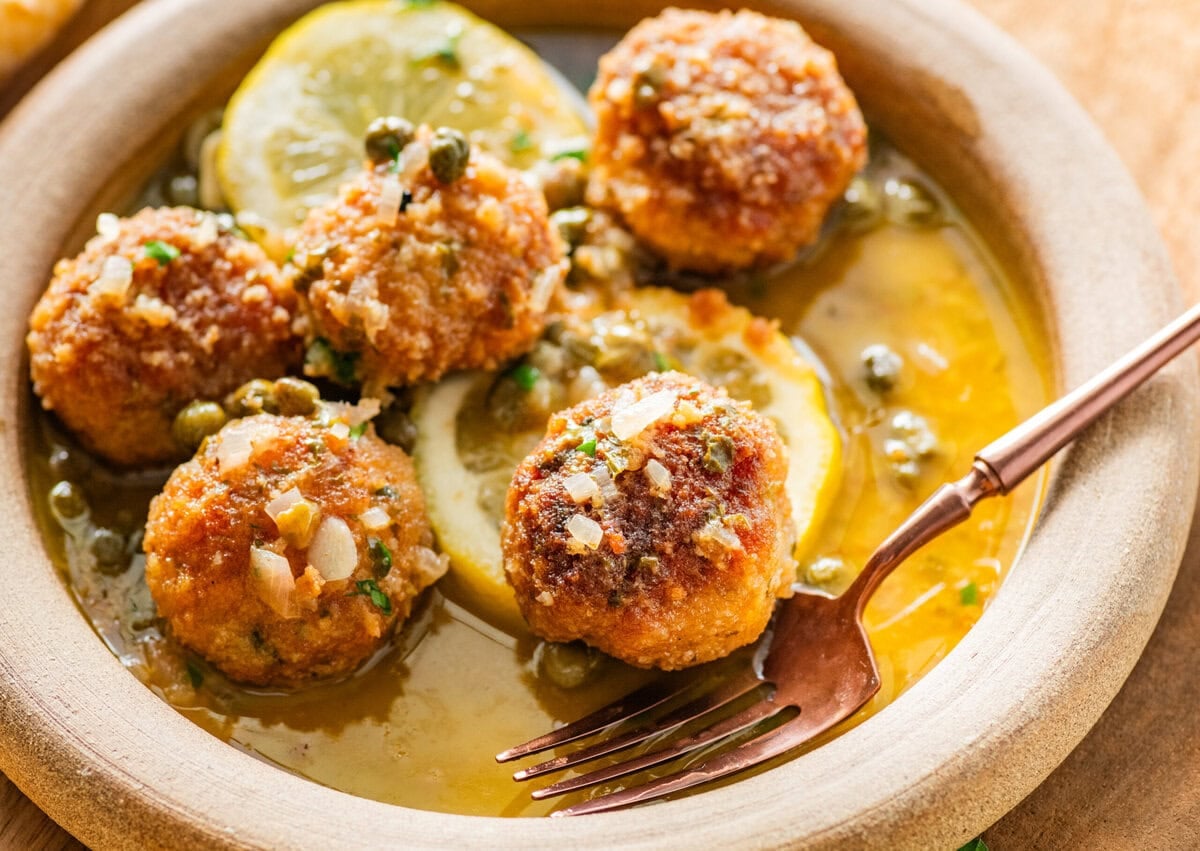 - Technique: Pan-seared meatballs finished in a lemon-butter piccata sauce
