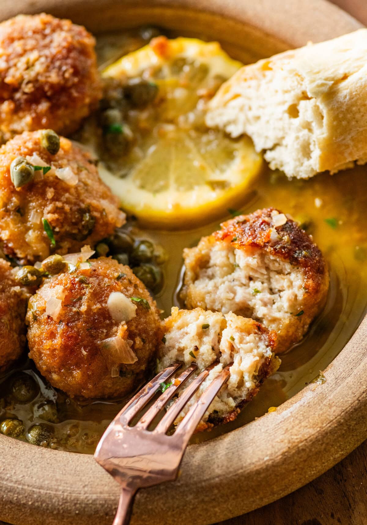 - Flavor / Texture: Bright and lemony with briny capers; juicy, tender meatballs in a silky sauce