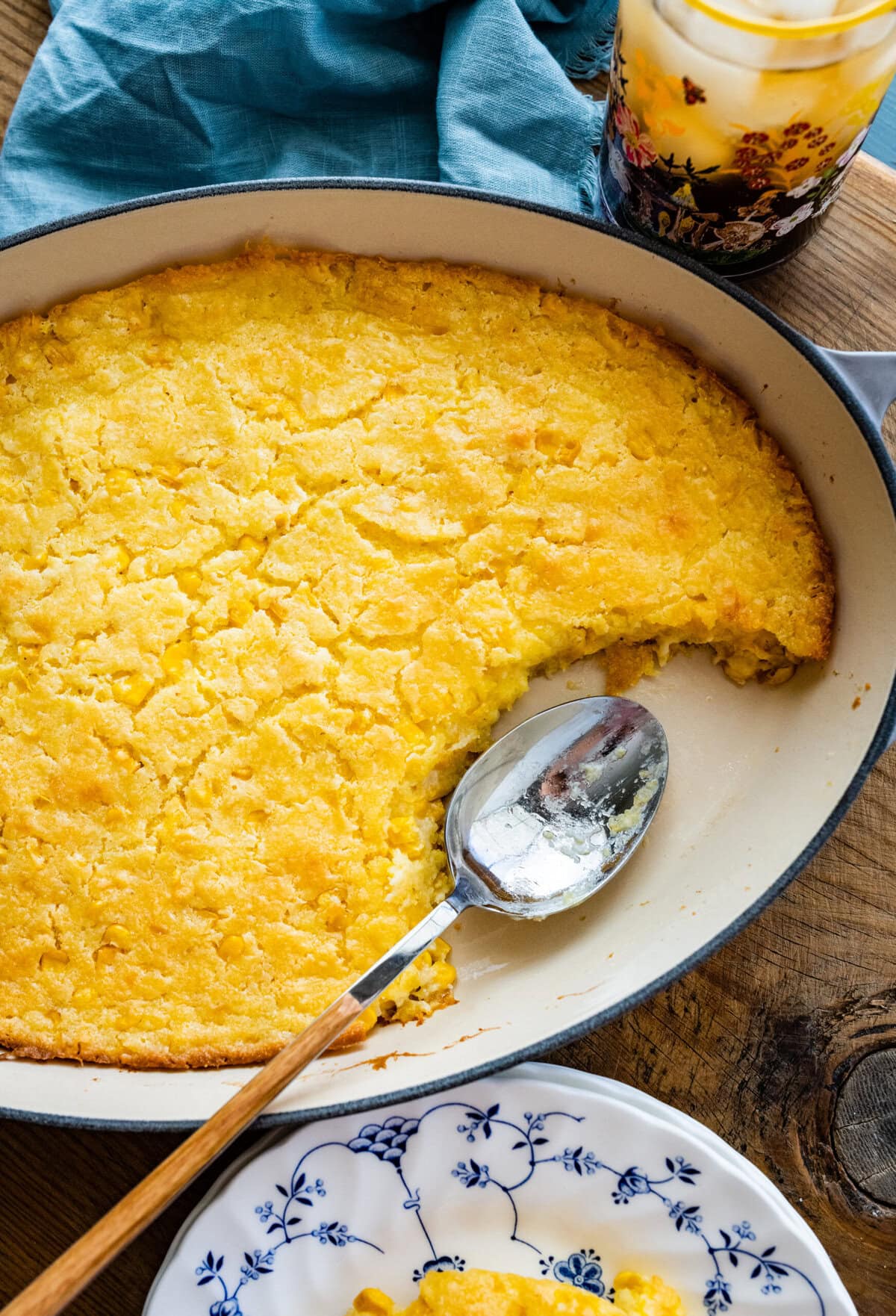 - Flavor & Texture: This easy side dish has a fluffy, cornbread-like texture with a creamy flavor and a hint of cheese.
