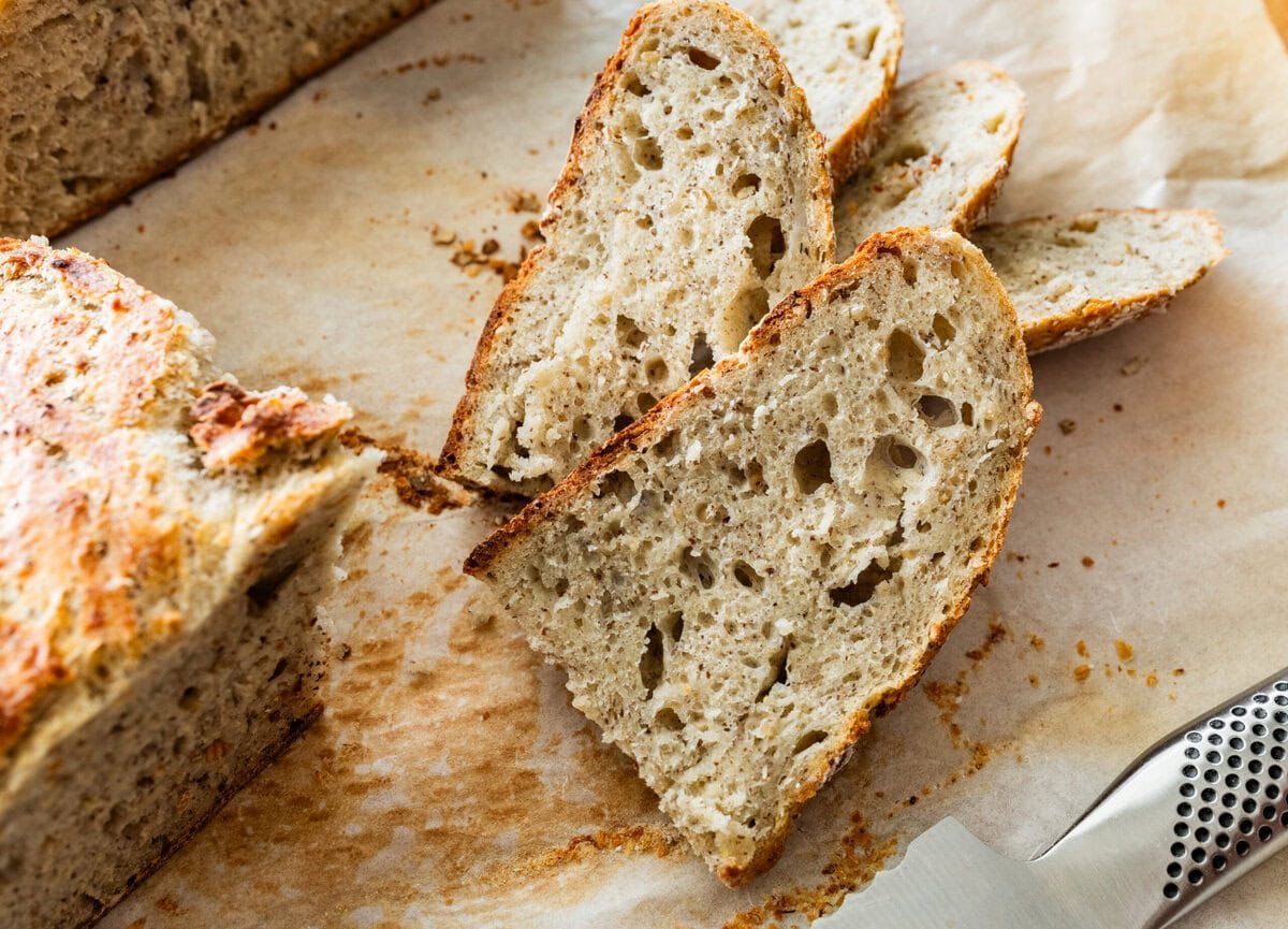 - Don’t rush the bake: This loaf needs enough time in the oven to develop its color and structure. Bake until the crust is deeply golden and sounds hollow when tapped on the bottom. Underbaked bread will be gummy inside.
