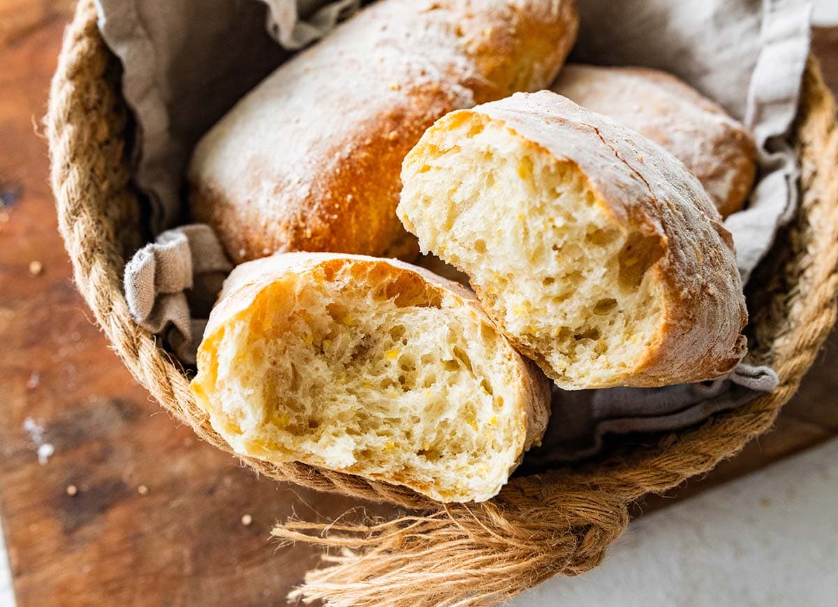 This bread is originally from the North of Italy: the Province of Rovigo in the Veneto Region. It is a flat, elongated bread with a light texture, also considered peasant bread, with the simplicity of the ingredients and process. Ciabatta produces a substantial crumb, and is soft on the inside and crusty on the outside. It is considered a typical old-fashioned Italian bread.