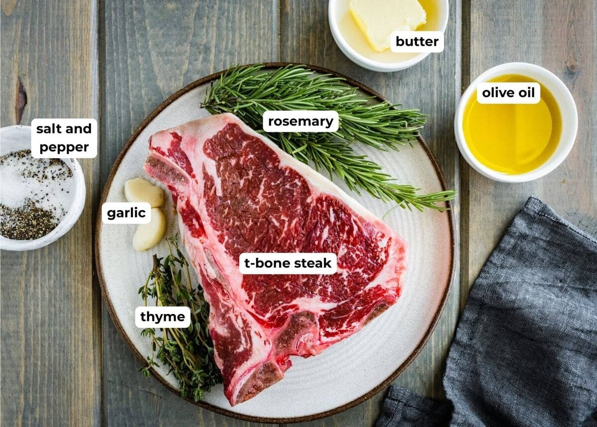 - 1 T-bone steak at least 1 inch thick up to 2 inches, about 1 lb to 1 lb 1/2