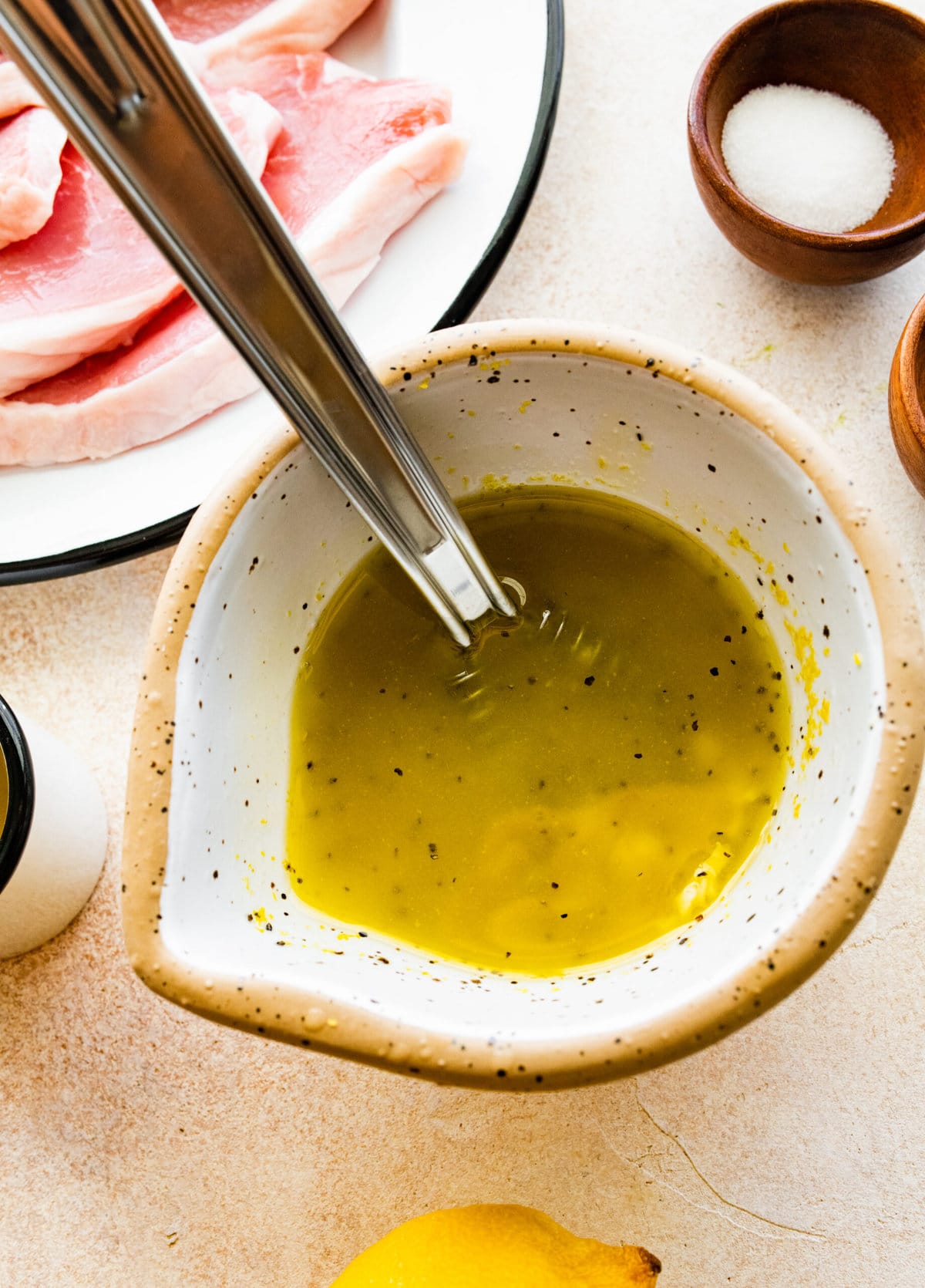 Step #3: Marinating the Pork Chops: Place the thin pork chops in a shallow dish or a resealable plastic bag. Pour the lemon-garlic marinade over the pork chops, ensuring they are well coated. Marinate for 30 minutes to 2 hours.