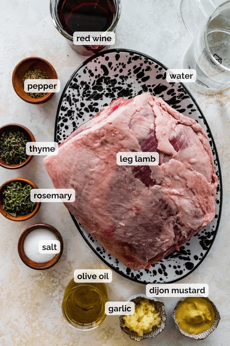 - Water: Used in the pan to keep the lamb moist during roasting.