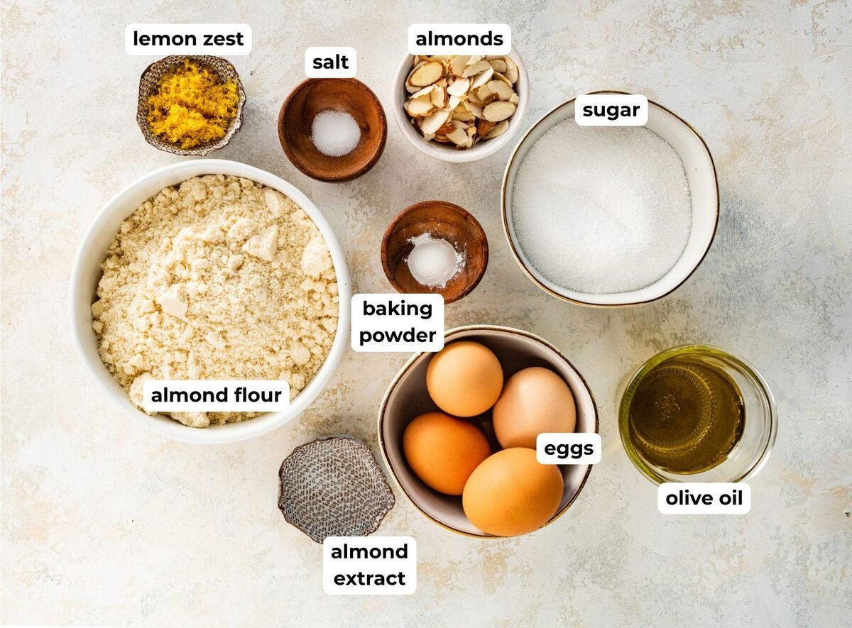 - Technique: Whisk eggs and sugar until fluffy, fold in almond flour, lemon zest, and baking powder, then stir in melted butter or olive oil. Pour into a prepared pan and bake until golden and set. Cool completely before dusting with powdered sugar and serving.