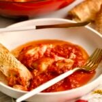 Store leftover stuffed calamari in an airtight container in the refrigerator for up to 2–3 days. Reheat gently on the stovetop over low heat with a little extra tomato sauce to keep the calamari tender and prevent it from drying out. This dish is best enjoyed fresh, as the texture of the calamari can become tougher the longer it’s stored.