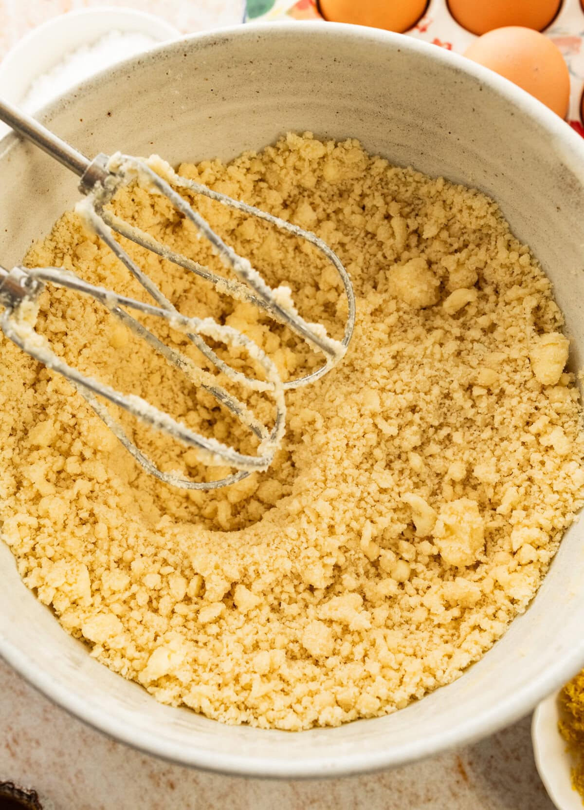 - Make the shortbread crust: In a large bowl, mix butter, flour, powdered sugar, and salt until a soft dough forms. You can also do this in a food processor or a handheld mixer. Press evenly into the bottom of the prepared pan. Bake for 10 minutes. Remove from oven.