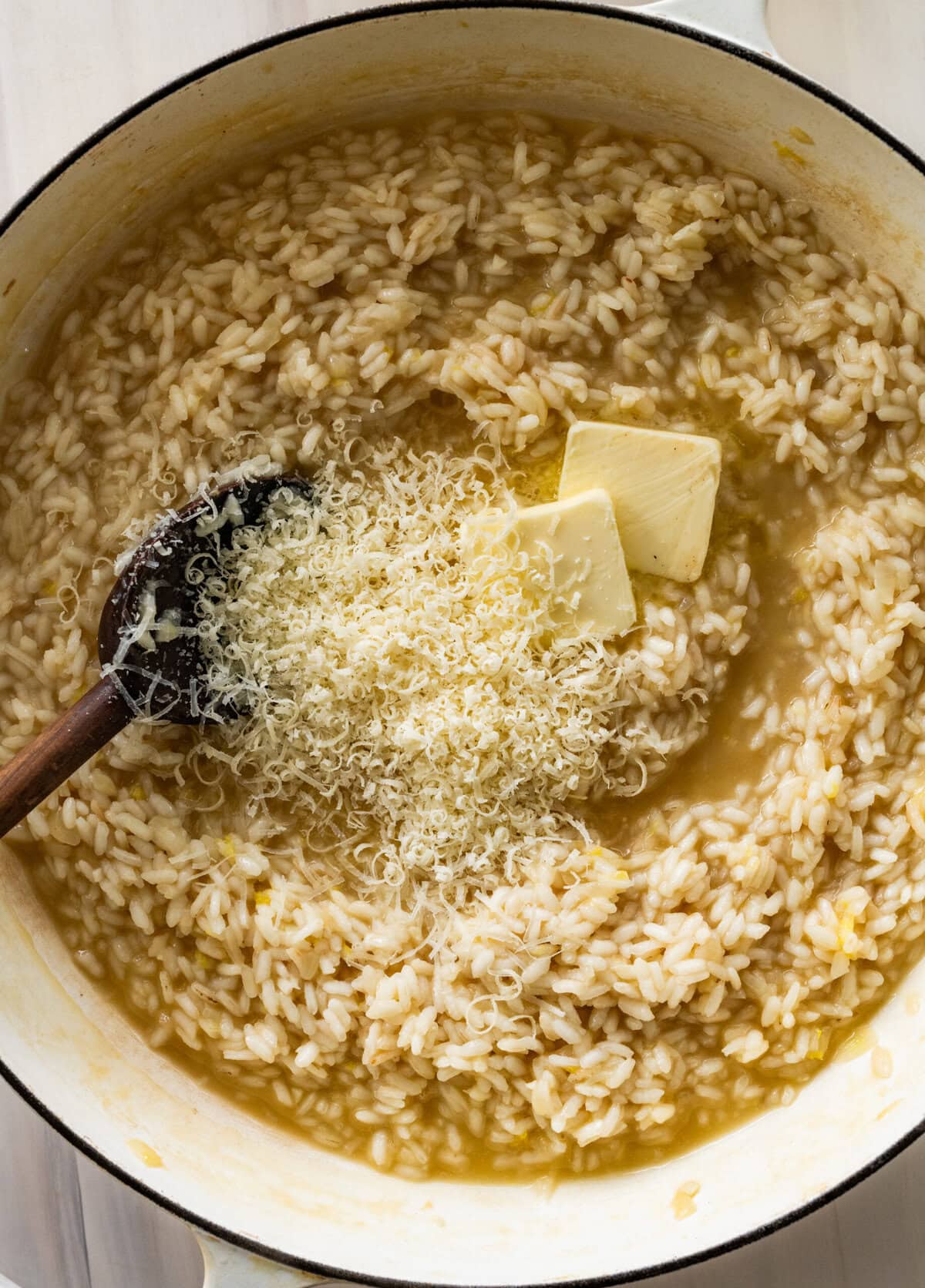 - Mantecatura (The Finish): Remove the pan from heat. Add the butter, and the Parmigiano Reggiano. Stir vigorously until creamy and emulsified. This creates the signature silky texture.