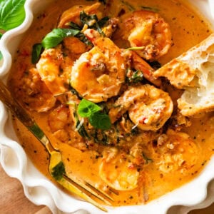 A rich, silky shrimp dish cooked in a garlicky sun-dried tomato cream sauce brightened with lemon and basil. It’s luxurious, fast, and perfect for pasta, rice, polenta, or crusty bread. A true “say yes” kind of meal.