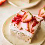 This strawberry tres leches is best served chilled, allowing the cake to fully absorb the creamy milk mixture for the perfect soft, melt-in-your-mouth texture. For a full Mexican-inspired spread, serve it after savory dishes like Shrimp Tacos With Creamy Slaw, Creamy White Chicken Enchiladas, or Easy Mexican Chicken Soup. Pair it with Mexican Street Corn Dip or Jalapeno Corn Dip to start, then finish the meal with this sweet, creamy dessert for the perfect balance of bold and indulgent.