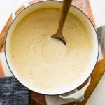 Make the roux – In a separate medium saucepan, melt the butter over medium heat. Once fully melted, add the flour and whisk constantly for 1-2 minutes until it forms a smooth paste. The mixture should be pale and slightly bubbly but not browned.